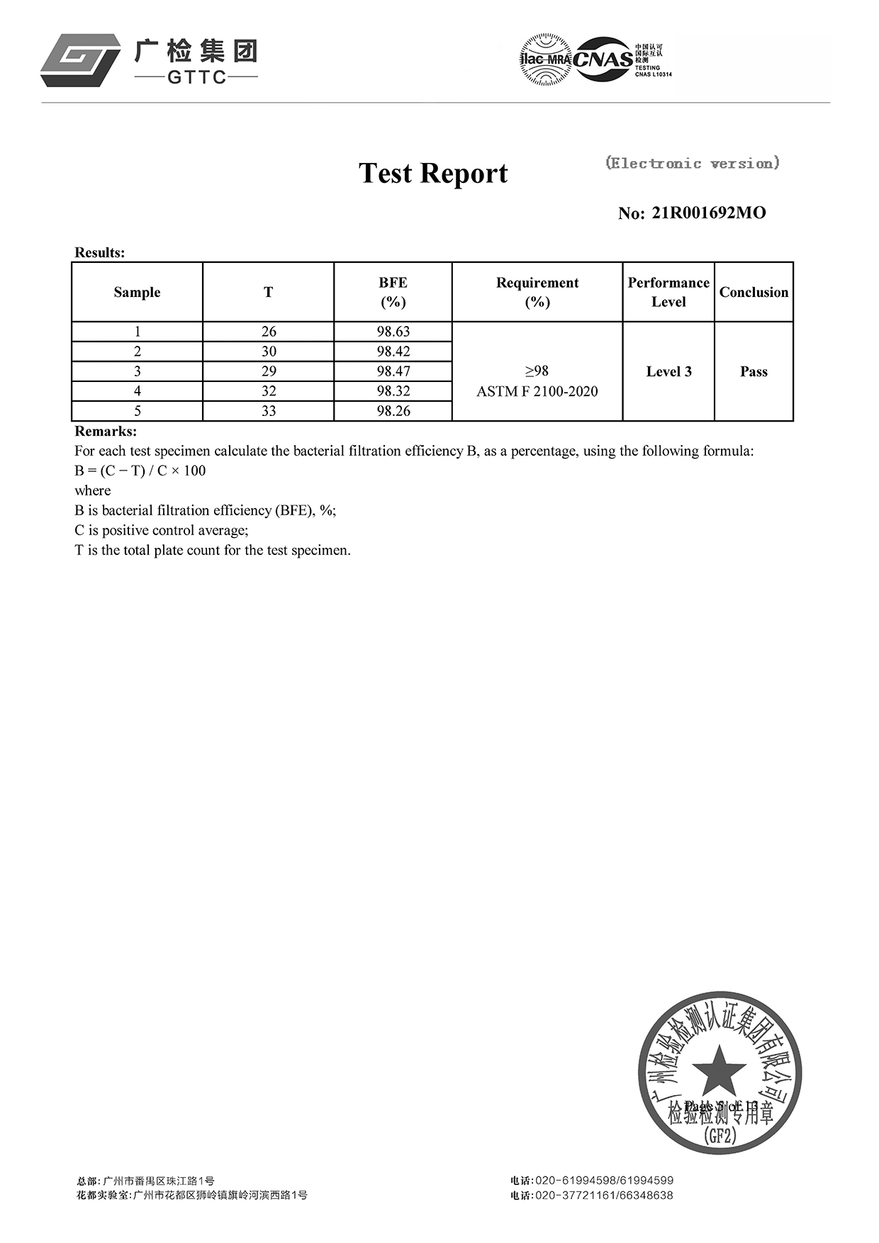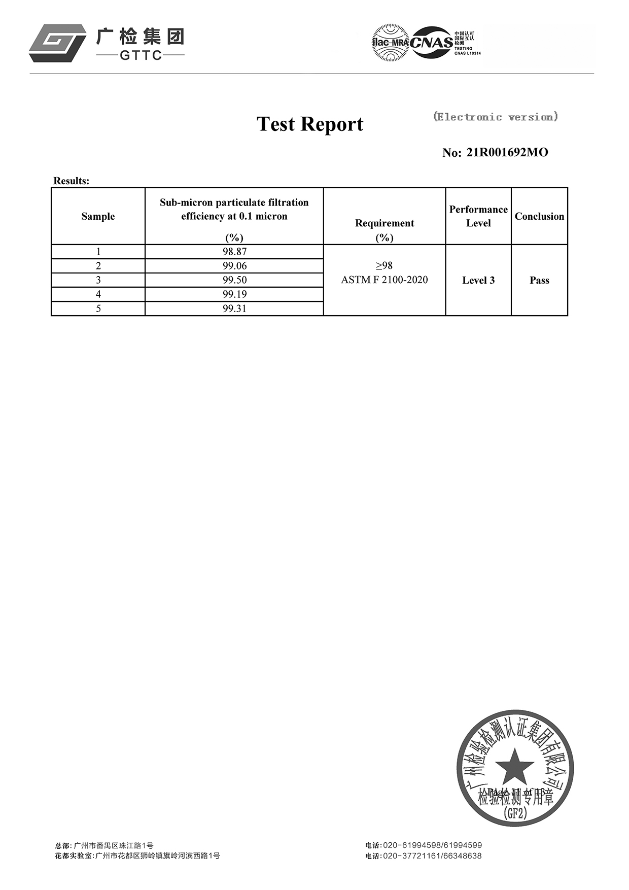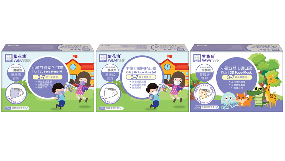 紫花油®WeArmask小童立體口罩達到醫療級別,符合ASTM F2100-2020 Level 3的標準。